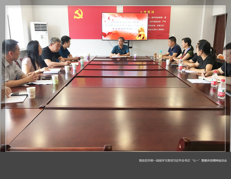 统一战线学习贯彻习近平总书记“七一”重要讲话精神座谈会在九三学社理工支社活动中心召开,各民主党派基层组织、统战团体负责人及部分民主党派代表参加座谈会。会议由党委统战部负责人主持。