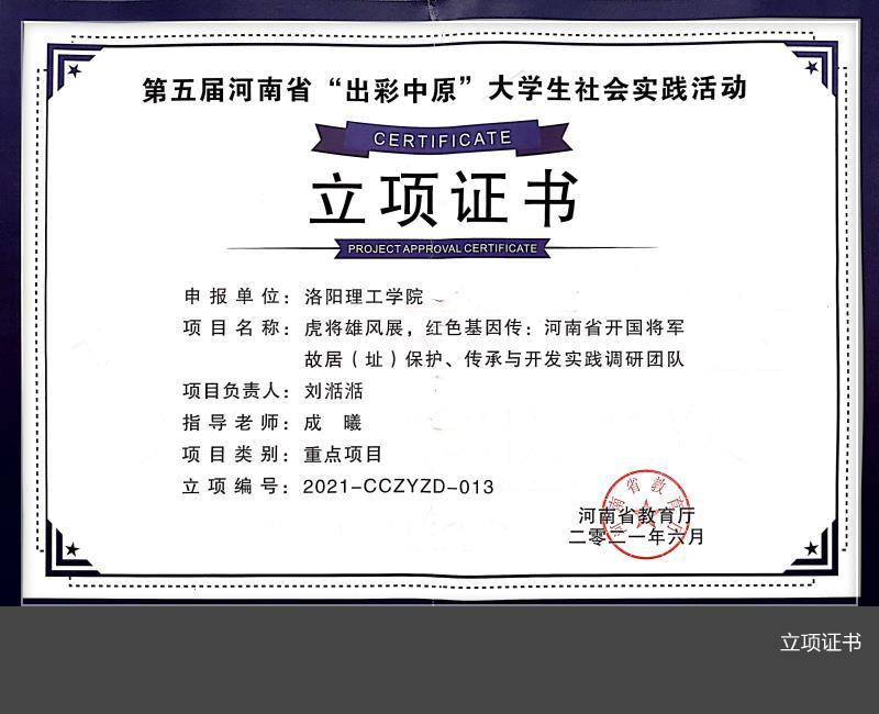 “虎将雄风展,红色基因传:河南省开国将军故居(址)保护、传承与开发实践调研团队”获立重点项目,“‘演’出一抹红--八路军驻洛办事处沉浸式红色演出实践团”获立一般项目。今年全省各高校共遴选出重点项目15项,一般项目100项。