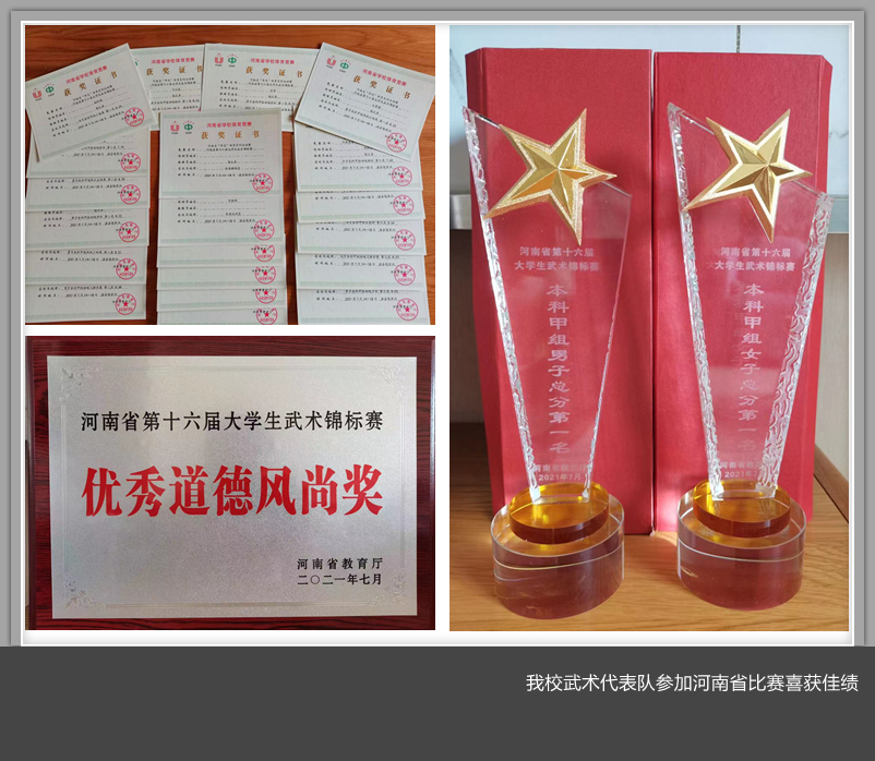 美高梅娱乐场 武术代表队在郭文革老师的带领下,选派10名运动员参加了19个项目的比赛。经过激烈角逐,美高梅娱乐场 最终荣获本科甲组男子团体第一名、本科甲组女子团体第一名,实现团体总分双冠王的历史性突破。其中单项荣获4金5银5铜,其他名次奖4项,并荣获优秀道德风尚奖。