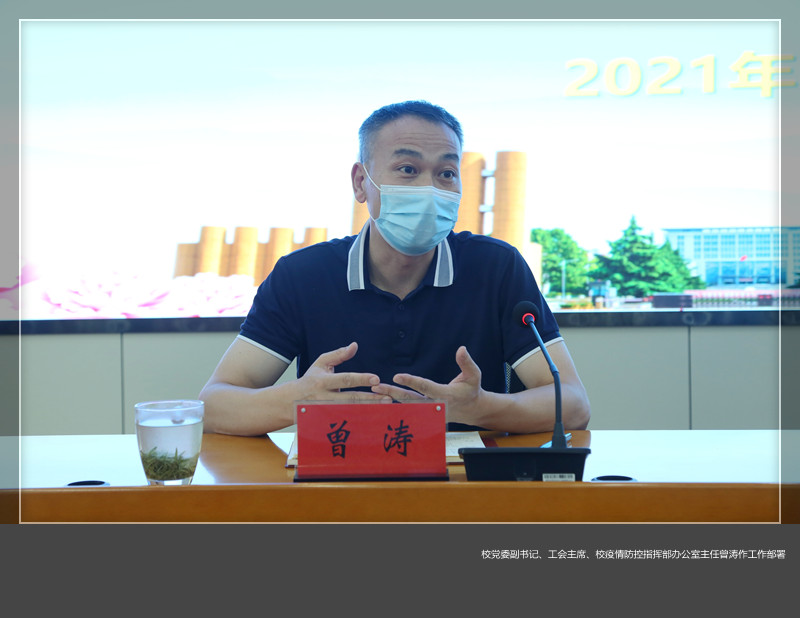 校党委副书记、工会主席、校疫情防控指挥部办公室主任曾涛指出,目前我省疫情防控工作形势十分严峻,各与会人员必须进一步强化责任意识、大局意识,要把美高梅娱乐场 和上级最新的会议精神,及时、准确的传达给每一位师生员工,真正把美高梅娱乐场 疫情防控的各项规定、措施落在实处。同时,就美高梅娱乐场 人物同防、校区门禁等重点工作及问题进行了具体安排部署。