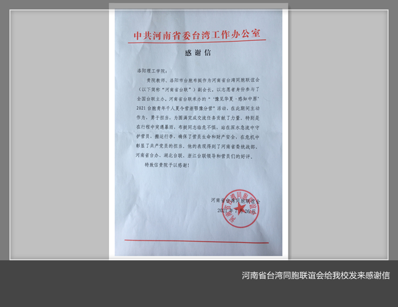 近日, 河南省台湾同胞联谊会(简称河南省台联)给美高梅娱乐场