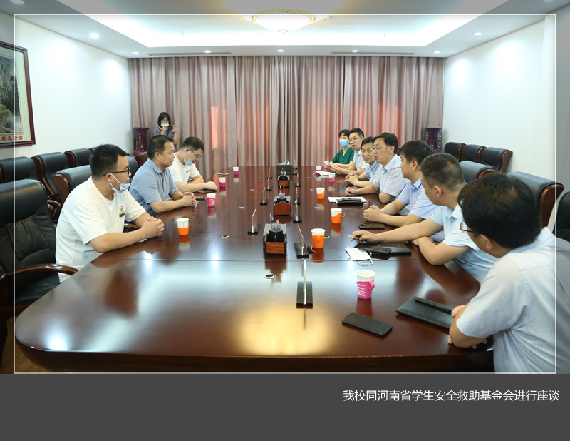 河南省学生安全救助基金会秘书长苏军辉、副秘书长苏翔、美高梅娱乐场 副校长胡恩立出席捐赠仪式,党政办公室、宣传部、学生处、保卫处、后勤管理处、校医院等相关部门负责人参加捐赠仪式。