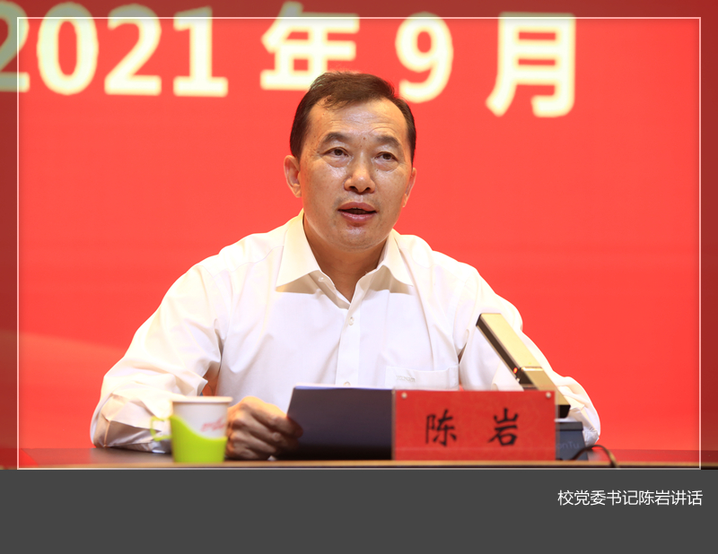 他对全校教职员工提出四点希望和要求:一要不忘教书育人初心,牢记立德树人使命。广大教师要肩负起人民教师的光荣使命,始终以培养民族复兴大任的时代新人为己任,始终把“为党育人、为国育才”使命担在肩上,履行好立德树人的职责,教育学生爱国、励志、求真、力行。二要坚定理想信念,筑牢信仰之基。作为教师,要政治过硬、信仰坚定,始终把坚定的信仰信念刻在心里、融入灵魂,弘扬爱党爱国、仁爱奉献的优秀品质,坚持铸魂育人,做学生为学、为事、为人的示范,引导和帮助学生把握好人生航向,帮助学生扣好人生第一粒扣子。三要严以修身立德,厚植爱党爱国情怀。把教书育人和自我修养结合起来,把国家和民族放在心上,做到以德立身、以德立学、以德施教,静心教书、潜心育人,做“品行之师、仁爱之师”,在塑造灵魂、塑造生命、塑造人的过程中诠释人民教师的职业价值。四要增强本领能力,助力学生逐梦成长。要不断提高学习能力、教书育人能力、把握未来发展趋势的能力、创新创造的能力、运用现代技术手段的能力,不断提高教学质量和教书育人的本领,成为业务精湛、学识渊博的“智慧之师、学问之师”,助力青年学子逐梦青春。陈岩最后强调,今年教师节恰逢建党百年,广大教职工要认真学习领会习近平总书记“七一”重要讲话精神,学深悟透践行伟大建党精神,以更好的精神状态、更高的标准、更实的作风、更好的业绩,在教书育人的伟大事业中绽放绚丽光彩!