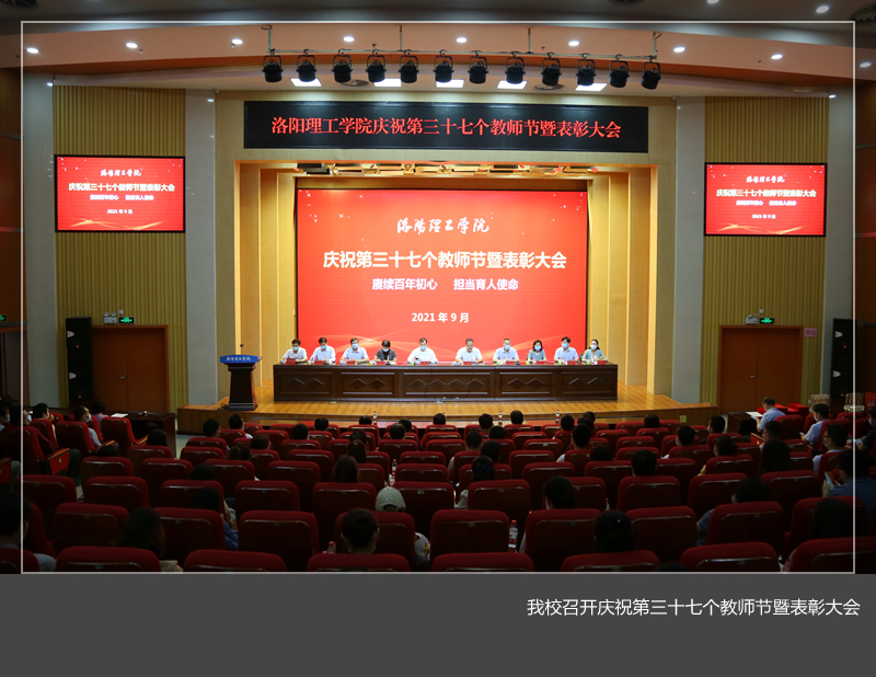 校党委副书记葛玻宣读了获得国家大学科技园、全国建材行业先进集体、河南省高校“黄大年式教师团队”、省级平安校园等先进集体和荣获河南省高层次人才、省级教学名师等先进个人名单;校党委副书记、工会主席曾涛宣读了大学生课外学术作品竞赛优秀指导教师、教学技能大赛获奖教师、洛阳市优秀教师、“从教满三十年”教职工、第四届“最美教师”的表彰决定;副校长胡恩立宣读美高梅娱乐场