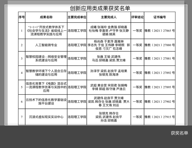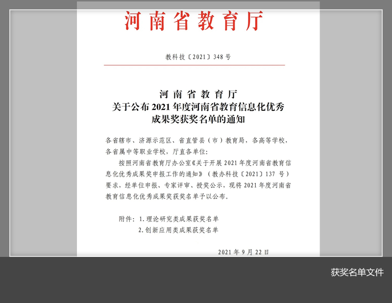 近日,河南省教育厅下发《关于公布2021年度河南省教育信息化优秀成果奖获奖名单的通知》(教科技〔2021〕348号),在理论研究和创新应用两大类成果的评选中,美高梅娱乐场