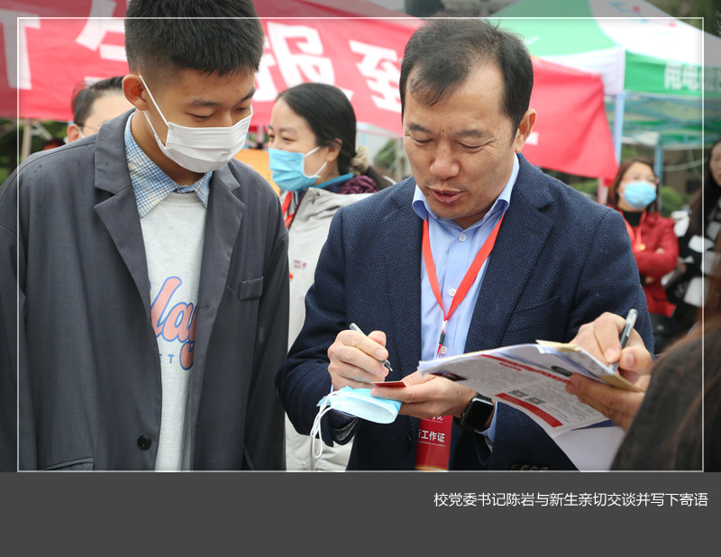 10月10日上午,校领导陈岩、张锐、葛玻、曾涛、丁梧秀、胡恩立在相关部门负责同志陪同下,深入迎新现场检查指导迎新工作,慰问迎新工作人员,并同2021级新生及家长亲切交谈。校领导详细了解了各相关部门及各美高梅娱乐场