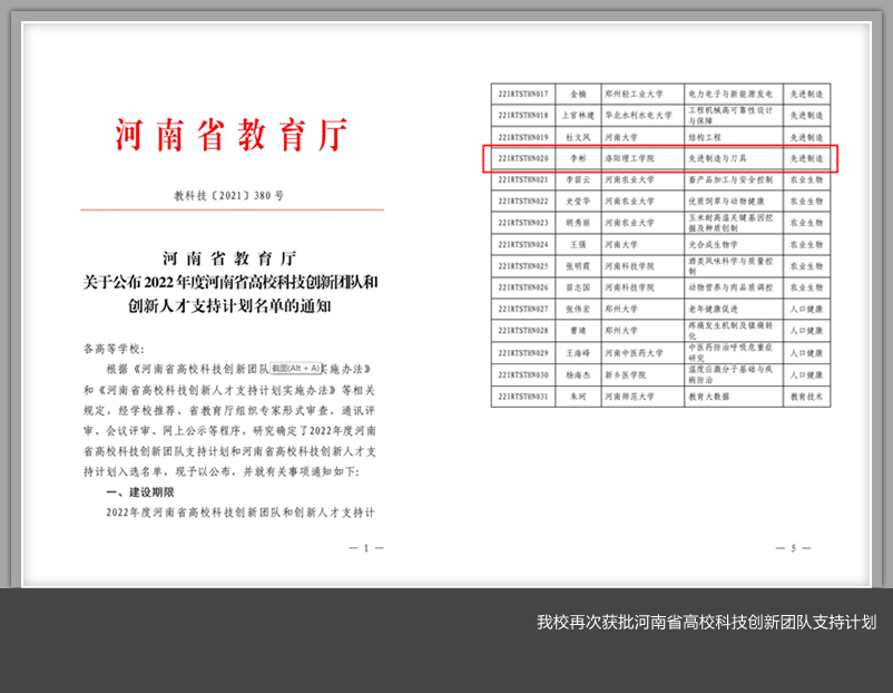 近日,河南省教育厅下发《河南省教育厅关于公布2022年度河南省高校科技创新团队和创新人才支持计划名单的通知》(教科技[2021]380号)文件,美高梅娱乐场