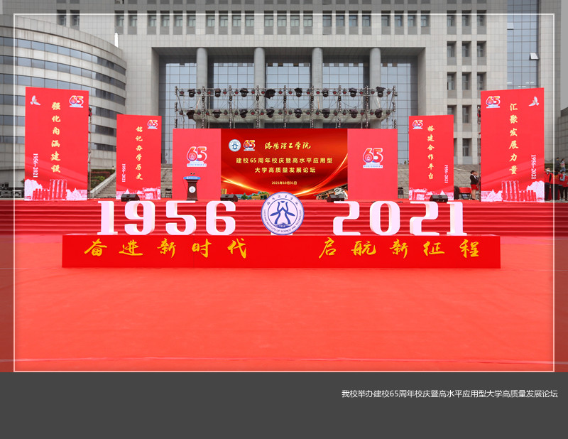 题为“奋进新时代 启航新征程”庆祝建校65周年暨高水平应用型大学高质量发展论坛在王城校区鼎元广场举办。省政协委员联络委员会主任郑邦山,省教育厅副厅长刁玉华,省科技厅副厅长刘英锋,洛阳市委常委、宣传部长王飞,郑州大学、河南科技大学、河南理工大学、中原工美高梅娱乐场
