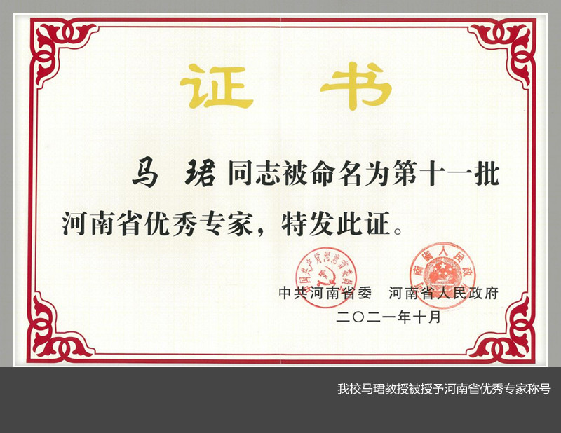 马珺教授获评河南省优秀专家称号,是美高梅娱乐场