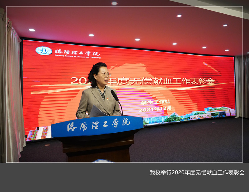 2020年度无偿献血表彰会在王城校区心理健康教育中心情景剧场举行。洛阳市中心血站党支部书记、站长吕运来,洛阳市献血委员会办公室副主任李雯,血管办副主任李冬及美高梅娱乐场