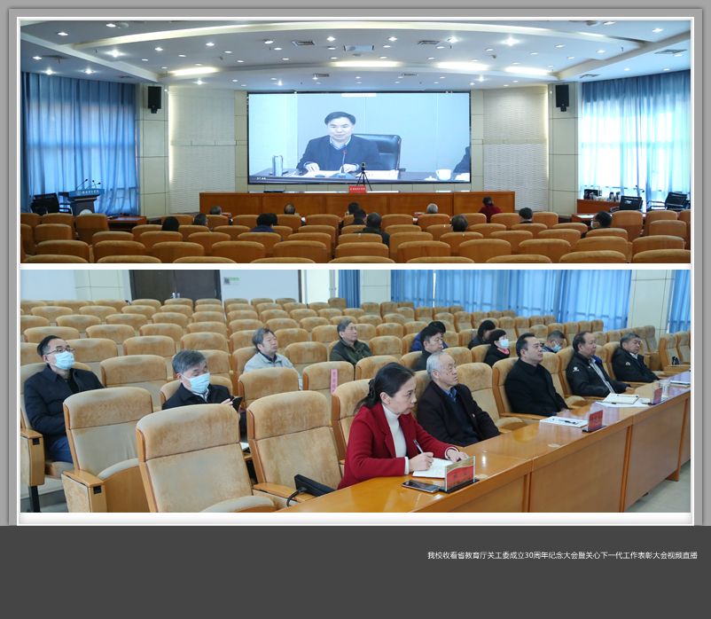12月7日上午,河南省教育厅关工委成立30周年纪念大会暨关心下一代工作表彰大会在郑州召开,大会以线上视频会议形式进行。校长张锐、校关工委常务副主任段治乾、校关工委副主任郭连治,校关工委秘书处成员和党委组织部、党委宣传部、学生工作部、党委教师工作部、校团委相关负责人及“五老”代表在王城校区办公楼二楼报告厅收看大会直播。