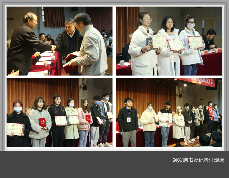 委员会关于成立关工委大学生记者团的通知》。段治乾为大学生记者团顾问李跃进、雷润堂颁发聘书并为大学生记者团授旗。郭连治等分别为记者团团长、副团长,记者团各部部长颁发聘书,赠送专业书籍。与会领导共同为大学生记者代表颁发采访证。