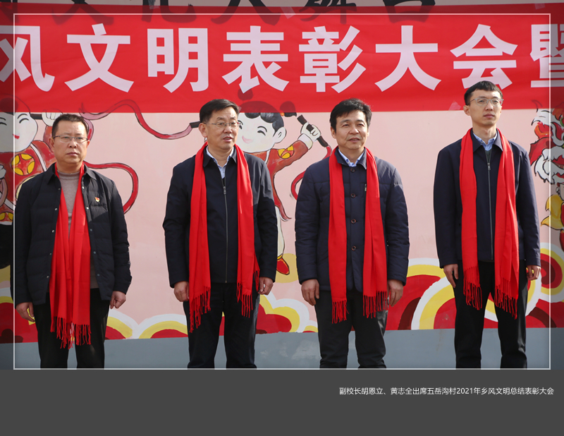 定点扶贫村五岳沟村举行2021年乡风文明总结表彰大会暨全村饺子宴。副校长胡恩立、黄志全,韩城镇人民政府镇长田振民、宜阳县审计局局长尹广超出席大会,校党政办公室、人事处、后勤管理处、校医院、驻村第一书记、韩城镇党政班子成员和全村400余名群众参加活动。