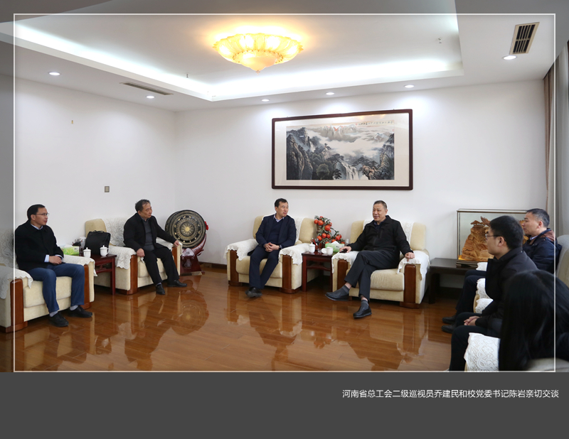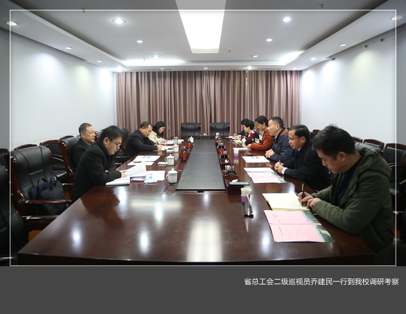 12月16日上午,河南省总工会二级巡视员乔建民,省教育厅人事处一级调研员、省教科文卫体工会兼职副主席姜楠一行莅临美高梅娱乐场 ,对校工会财务工作规范化等进行调研考察,校党委副书记、工会主席曾涛及工会全体人员参加调研活动。