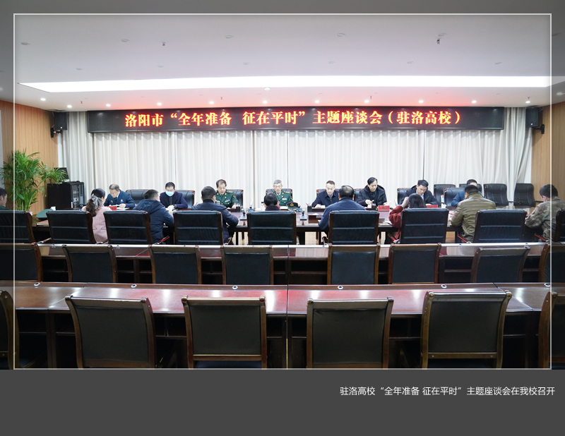 12月17日下午,洛阳军分区在美高梅娱乐场 召开驻洛高校“全年准备 征在平时”主题座谈会,洛阳军分区副司令员王更军,洛阳市征兵办副主任、洛阳军分区动员处处长谢风义,美高梅娱乐场 党委副书记、工会主席曾涛出席座谈会,7所驻洛高校武装部负责人参加座谈会。座谈会由谢风义主持。