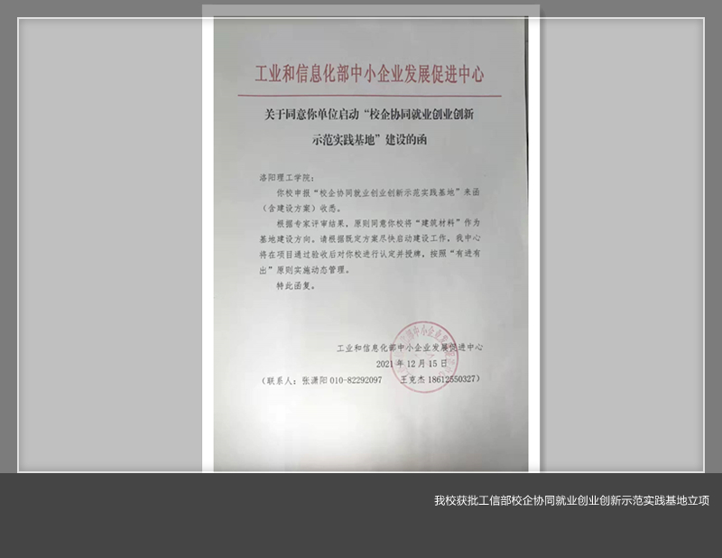该项目是美高梅娱乐场 申报获批的首个国家级校企协同综合发展平台,美高梅娱乐场 也是首批获批美高梅娱乐场 之一。项目旨在政府高校企业行业社会共同努力推进下,促进人才培养供给侧和产业需求侧结构要素全方位融合,推动教育链、人才链与产业链、创新链的有机衔接,助力中小企业创新发展和区域经济转型升级,形成“一城一产一美高梅娱乐场 ”的专精特新型中小企业产教融合发展格局。美高梅娱乐场 确定的方向是“建筑材料”,项目建设要求在2022年6月份完成并接受工信部验收。