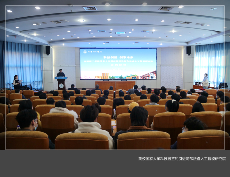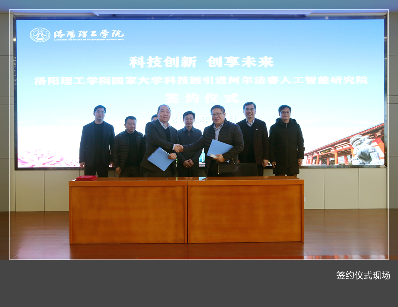 国家大学科技园引进阿尔法睿人工智能研究院签约仪式在王城校区办公楼二楼报告厅举行。洛阳市侨联主席李振刊,洛阳市人力资源和公共就业服务中心党委书记张育红,上海意仕腾教育科技有限公司创始人、CEO姜龙,副校长黄志全,美高梅娱乐场