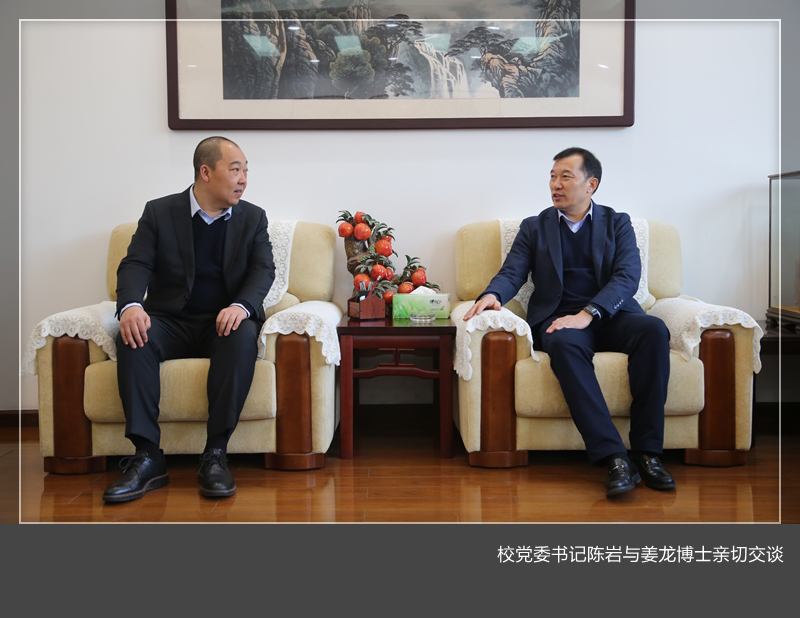 签约仪式前,校党委书记陈岩与姜龙博士进行了亲切交谈。