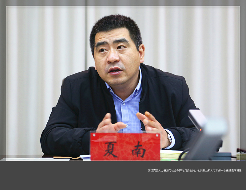 浙江安吉人力资源与社会保障局党委委员、公共就业和人才服务中心主任夏南,安吉天子湖镇党委委员陈健及美高梅娱乐场