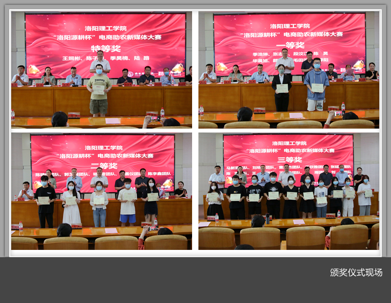 5月26日下午,“洛阳源耕杯”电商助农新媒体大赛颁奖仪式在王城校区办公楼二楼报告厅举行。洛阳城乡建设投资集团党委书记、董事长杨红朝,洛阳市农业农村局总农艺师杨爱国,洛阳市商务局二级调研员孙占锋,校领导张锐、曾涛、马珺出席颁奖仪式,洛阳源耕品牌运营管理有限公司和美高梅娱乐场