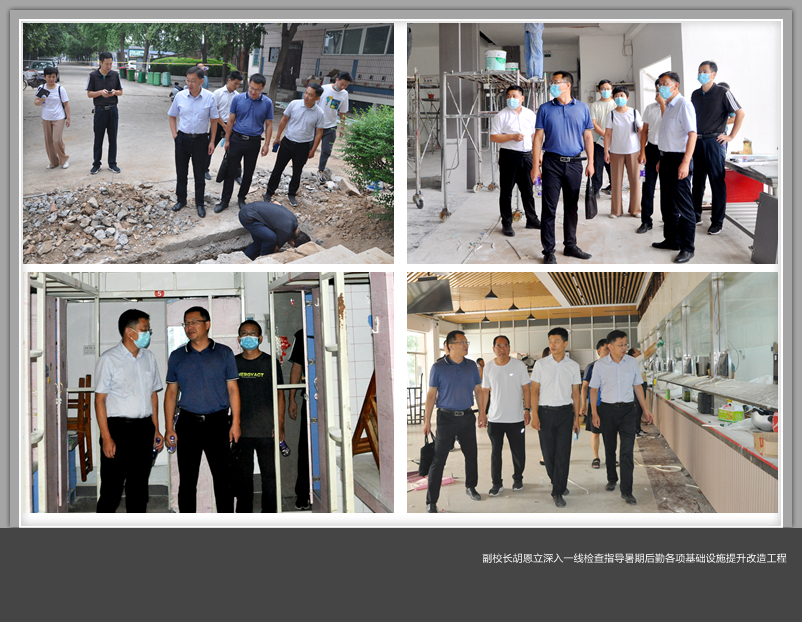8月17日上午,副校长胡恩立深入一线对暑期后勤各项基础设施提升改造工程进行检查指导,后勤管理处领导班子成员、各项目负责人陪同检查。