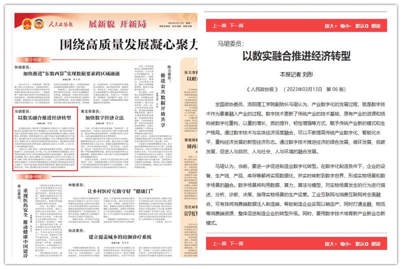 1.《人民政协报》 2023-03-13第06版聚焦《马珺委员:以数实融合推进经济转型》: