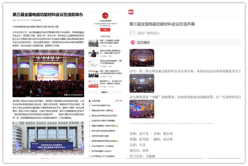 2.《河南日报》客户端 2023-03-28《先进材料设计与功能优化暨第三届全国电磁功能材料会议在洛阳举办》: