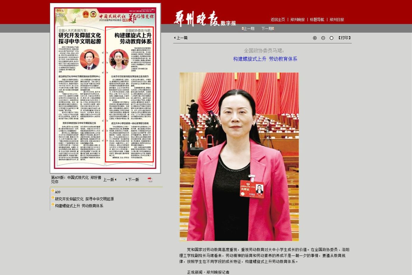 8.《郑州晚报》 2023-03-10第A09版中国式现代化 郑好豫见你《全国政协委员马珺:构建螺旋式上升劳动教育体系》: