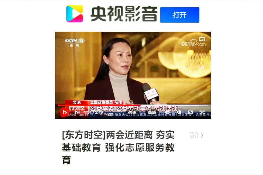 2.央视新闻频道《东方时空》栏目 2023-03-09《两会近距离 夯实基础教育 强化志愿服务教育》:
