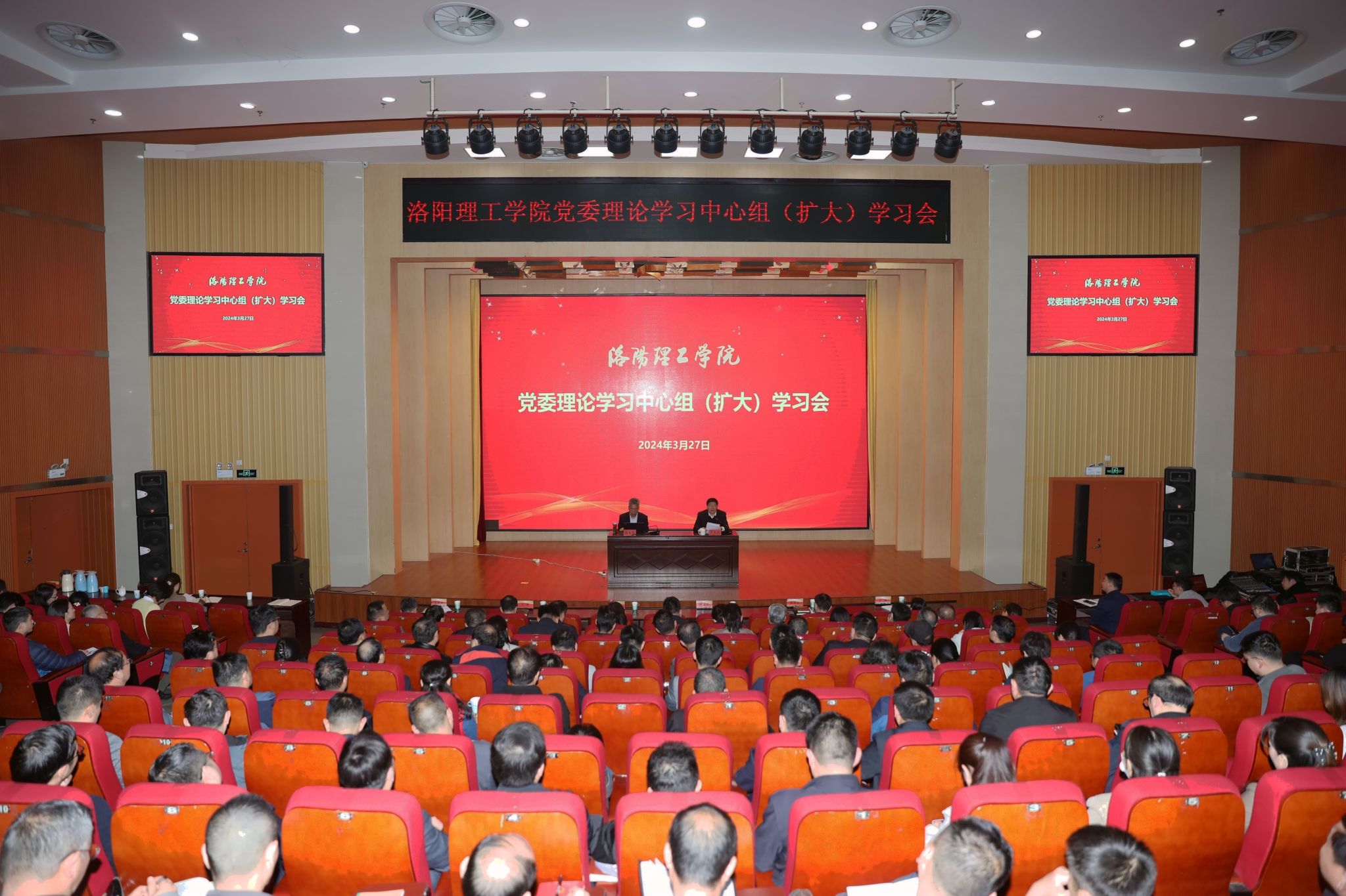 在王城校区图书信息中心报告厅举行党委理论学习中心组(扩大)学习会,专题学习习近平总书记关于新质生产力的重要论述。校党委理论学习中心组成员、全校副处级以上干部、理工科教学单位系(室)主任、博士学位教师代表和经济与管理美高梅娱乐场