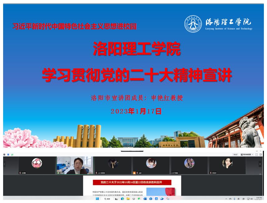 为带领全校师生深入学习贯彻党的二十大精神,充分认识党的二十大的重大意义、重要成果,推动习近平新时代中国特色社会主义思想进校园,进一步在全校营造学习宣传贯彻二十大精神的浓厚氛围,1月17日,由党委宣传部、校团委组织的学习贯彻党的二十大精神宣讲暨青年宣讲团第一次集体备课活动以腾讯视频会议的形式召开。