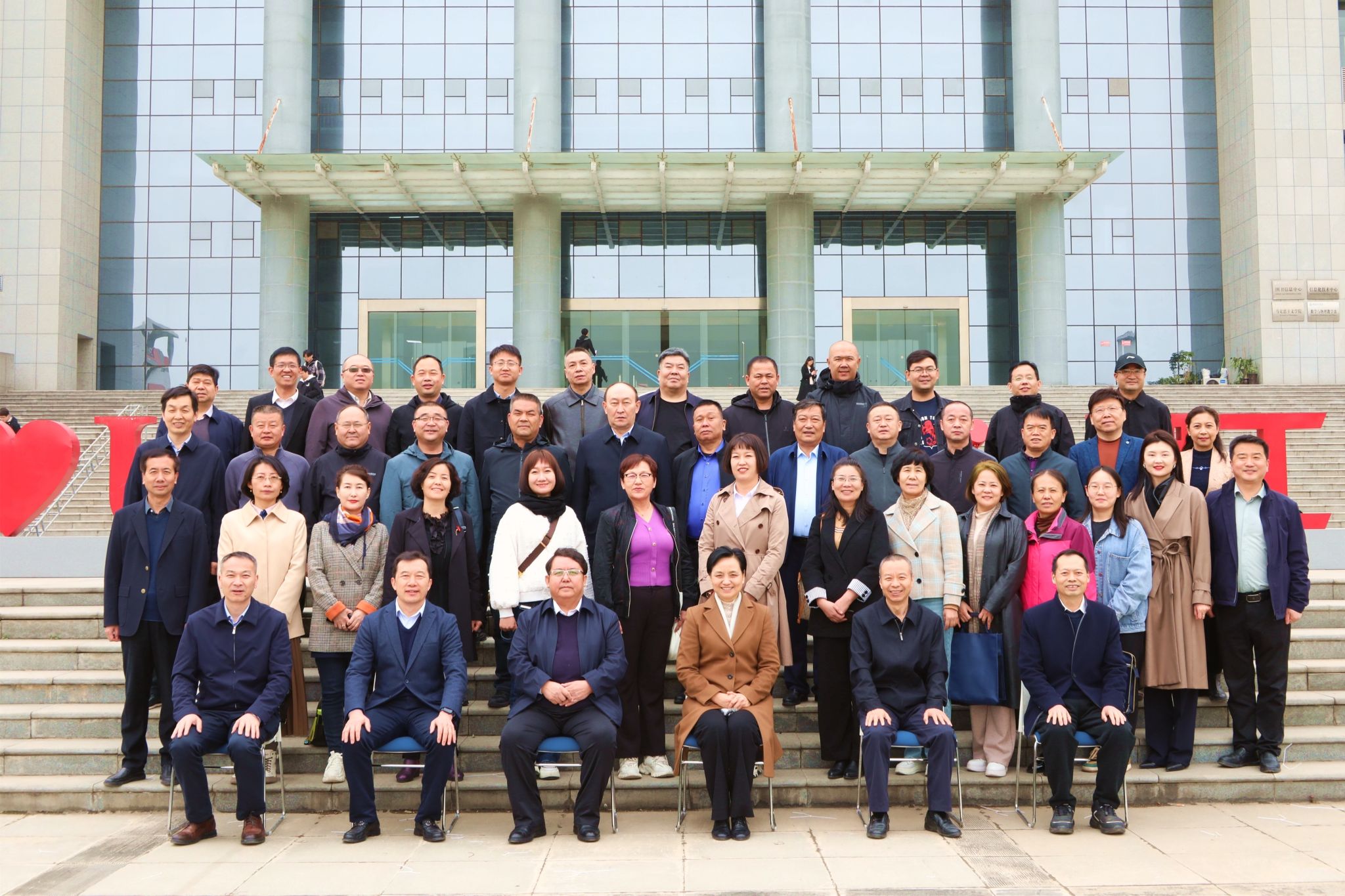 哈密市政协副主席热哈提•艾力别克、洛阳市政协副主席陈淑欣、校党委书记陈岩共同为“新疆维吾尔自治区哈密市政协委员培训基地”揭牌