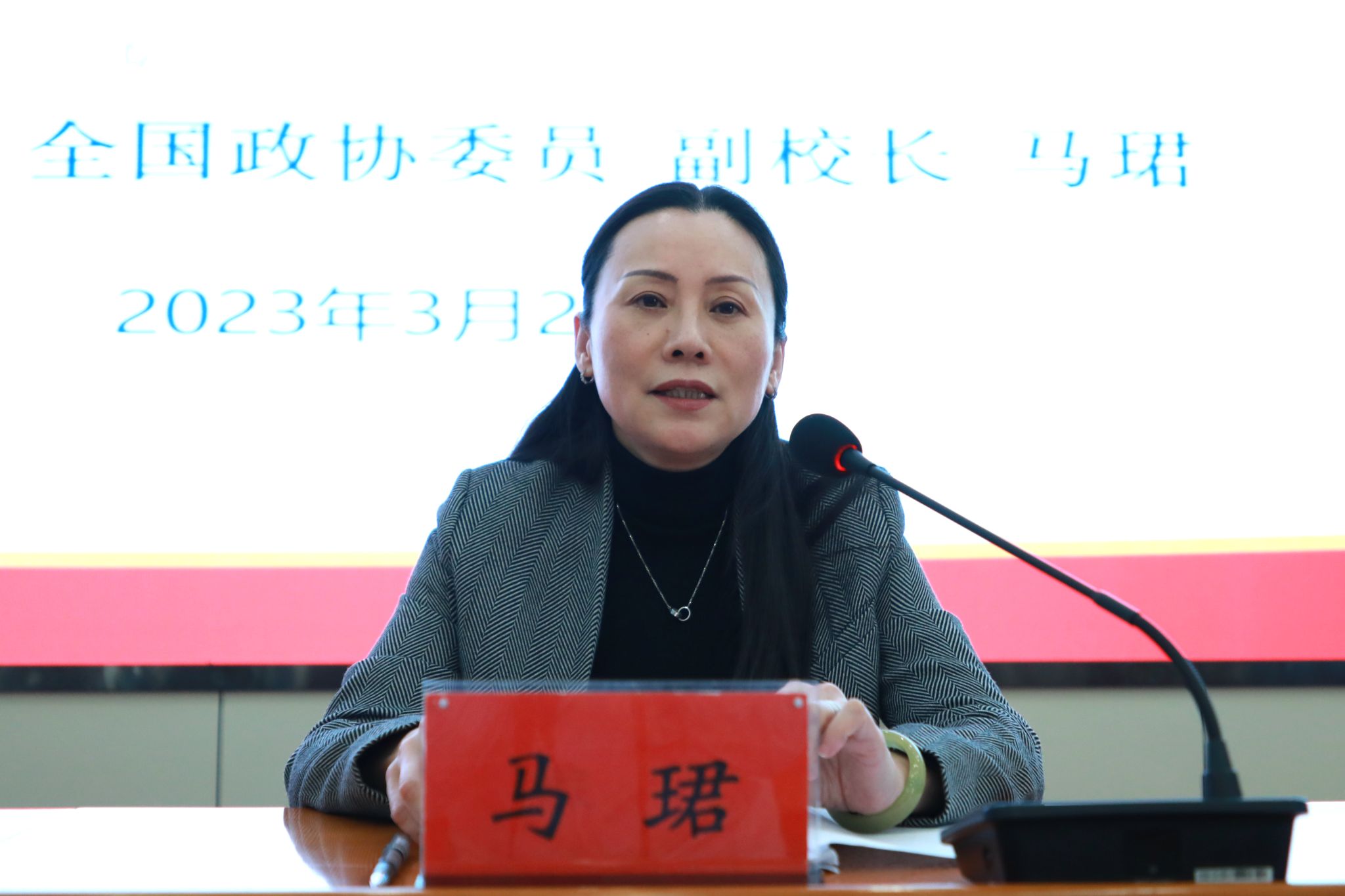 马珺介绍了2023年全国两会的盛况,传达学习十四届全国人大一次会议和全国政协十四届一次会议精神,重点传达了两会期间习近平总书记重要讲话精神,政府工作报告、政协常委会工作报告的主要内容,并分享了她作为政协委员的履职情况、参会感悟与思考。