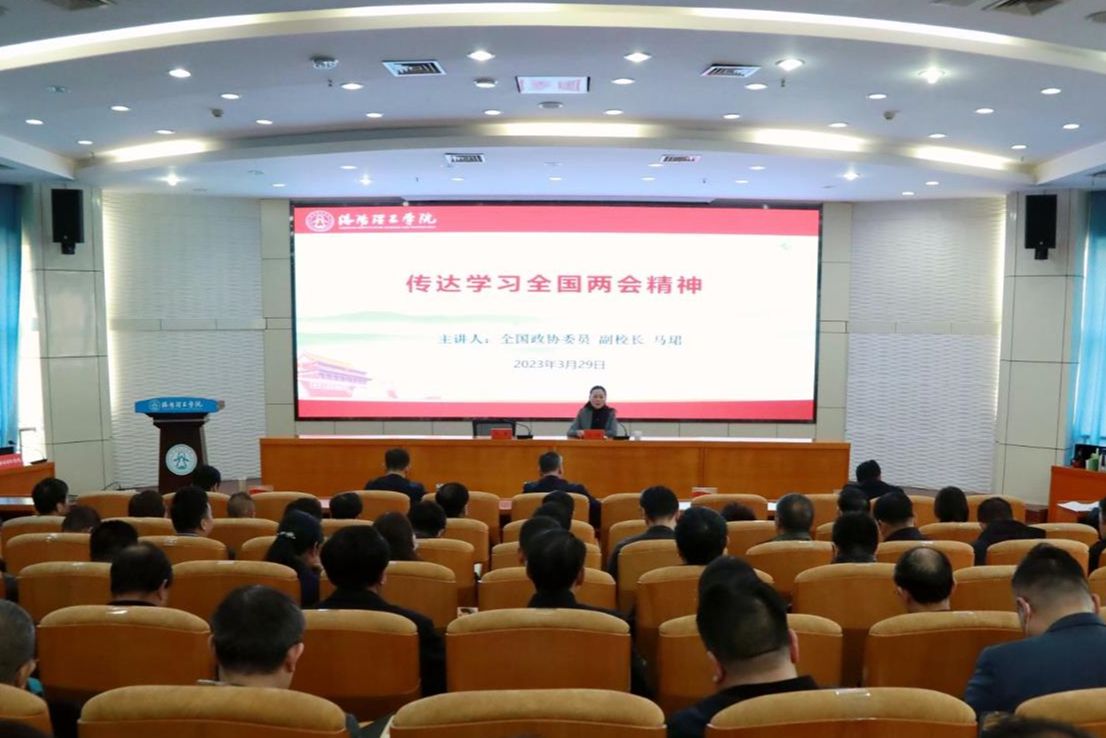 3月29日下午,美高梅娱乐场 在王城校区办公楼二楼报告厅举行党委理论学习中心组(扩大)学习会,全国政协委员、副校长马珺传达学习2023年全国两会精神。校党委理论学习中心组成员出席会议,各二级单位负责人、统一战线代表、学生代表等参加会议。校党委书记陈岩主持会议。