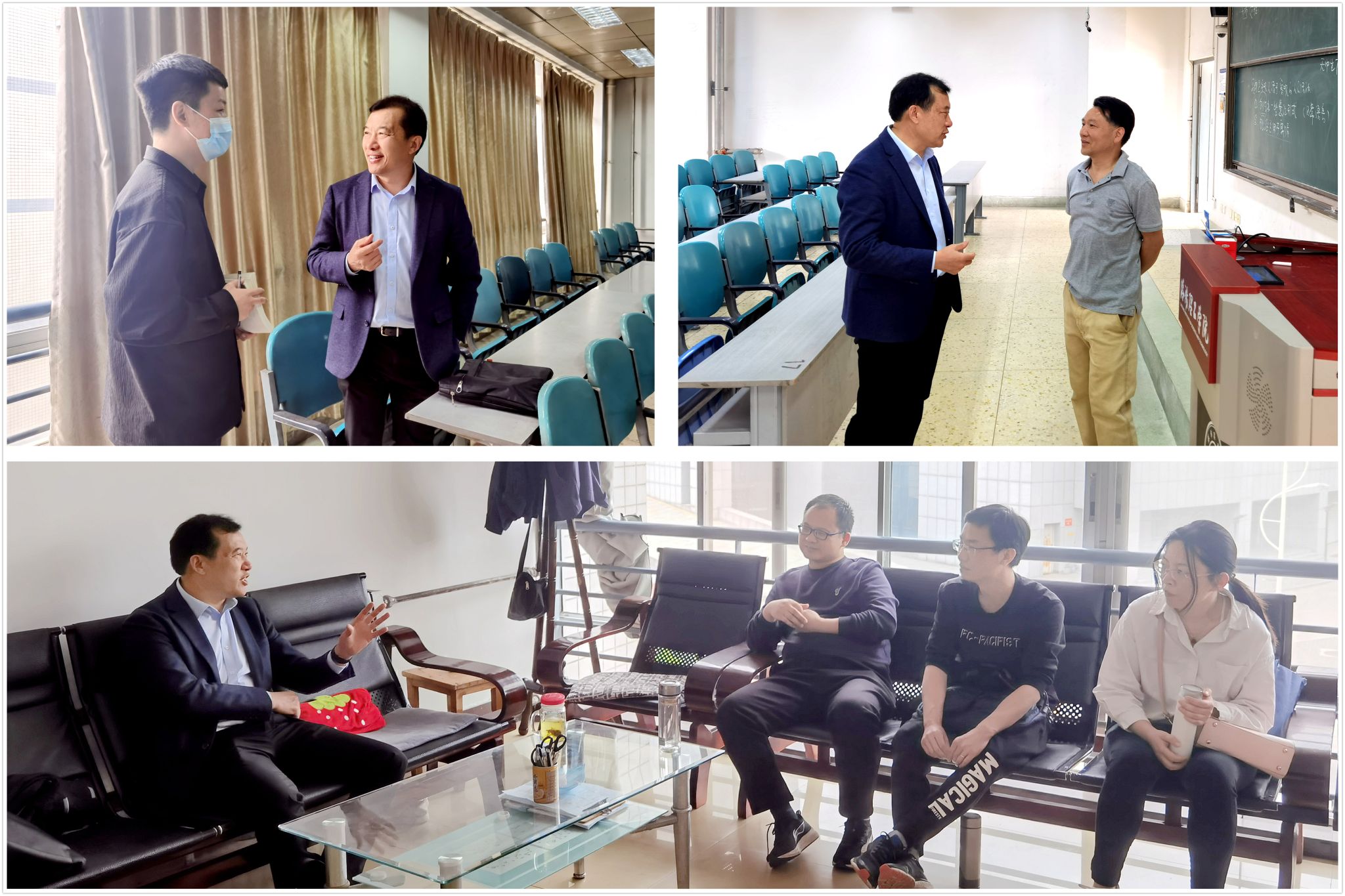陈岩分别听取了韩瑞韬博士讲授的《中国近现代史纲要》课程、杨云博士讲授的《形势与政策》课程、孙爱军博士讲授的《马克思主义基本原理》课程。在课堂教学间隙,陈岩询问了学生的学习情况,勉励同学们要自觉加强思想政治理论的学习,励志成长为有理想、敢担当、能吃苦、肯奋斗的新时代好青年。