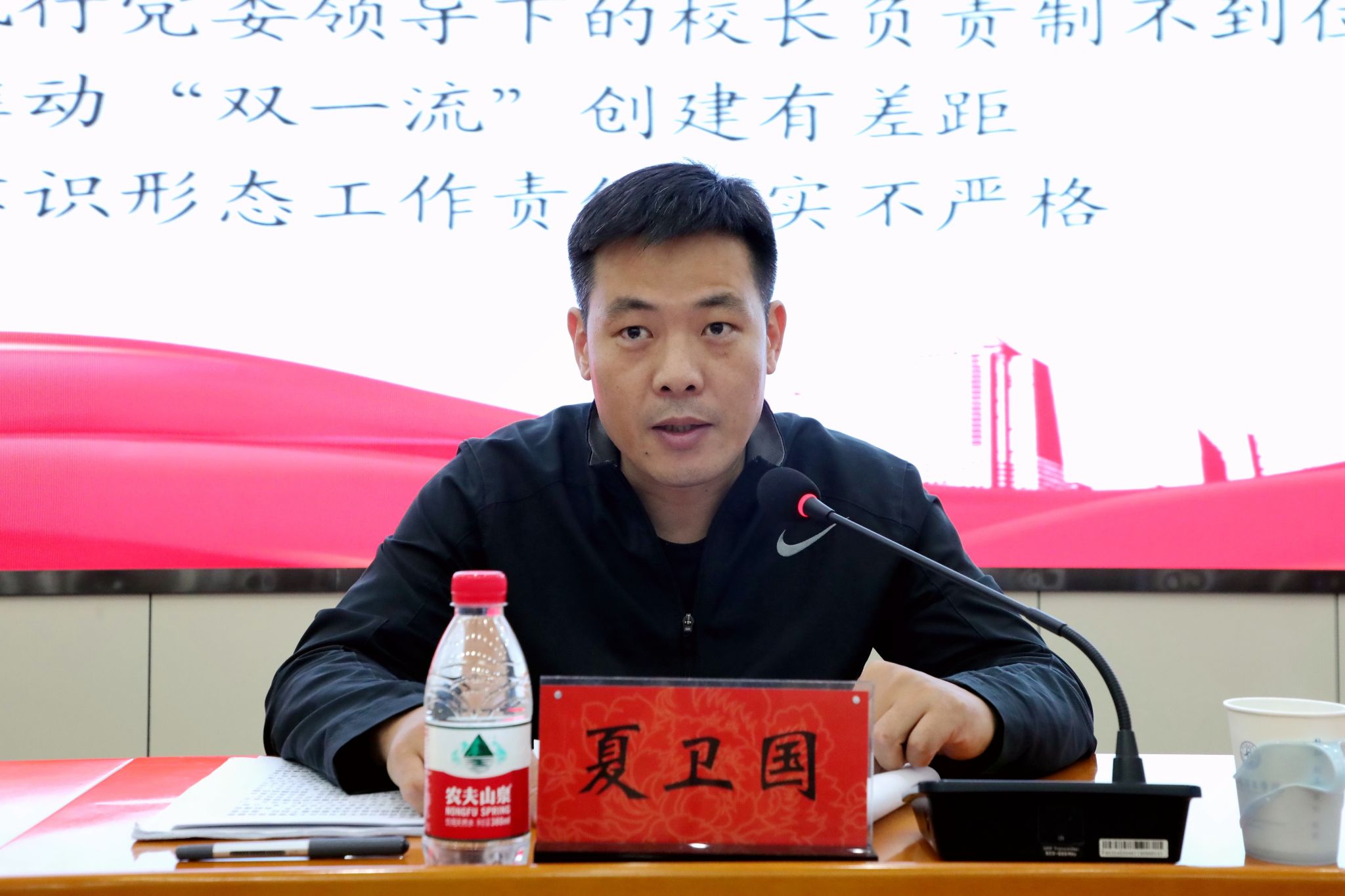 校党委书记陈岩主持会议并讲话