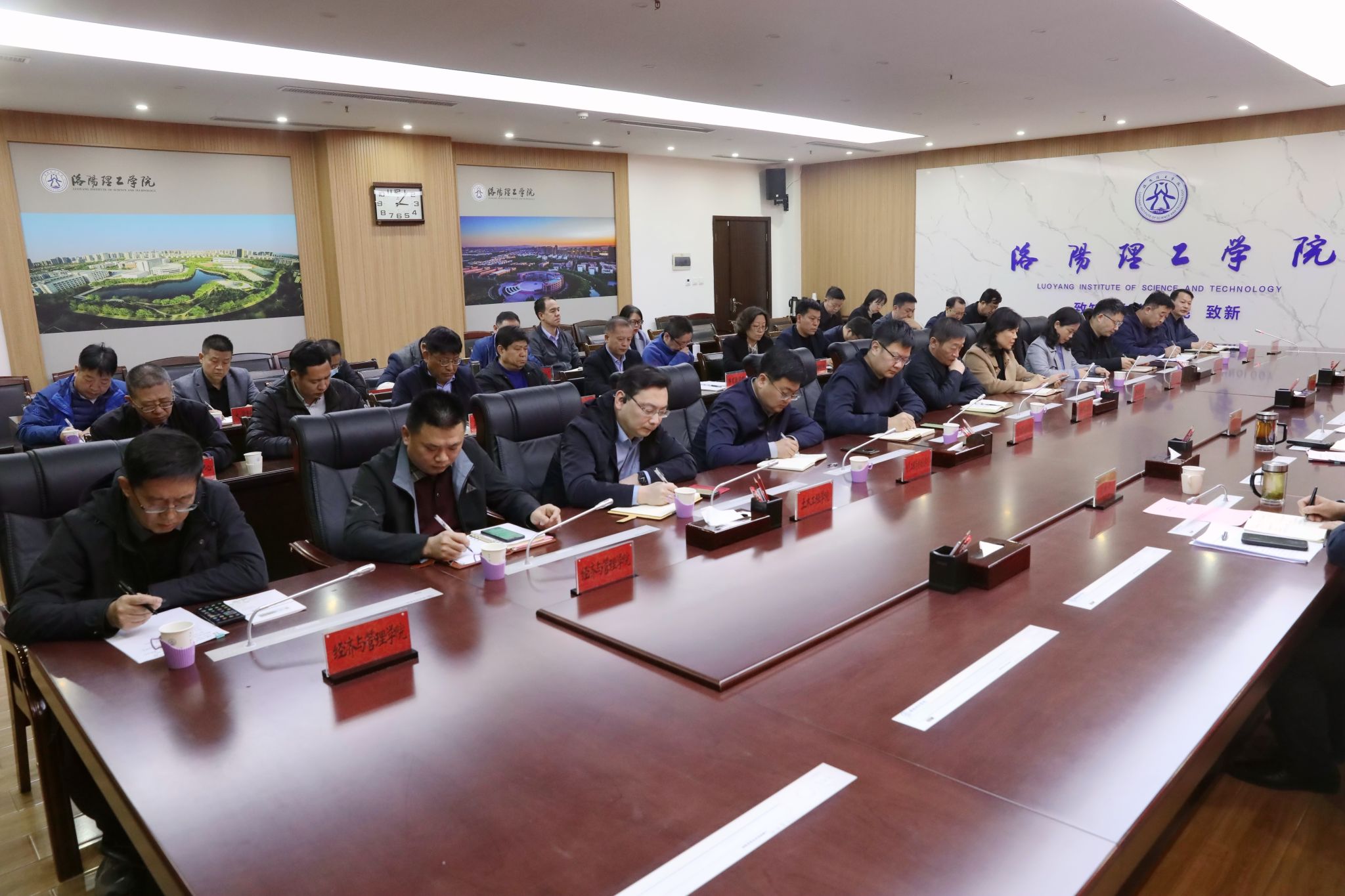 在王城校区办公楼116会议室召开二级党组织书记座谈会。党委书记卢志文主持会议并讲话,党政办公室、党委组织部、学生工作部、教务处等相关职能部门负责人,各二级党组织书记、正处级组织员参加座谈会。