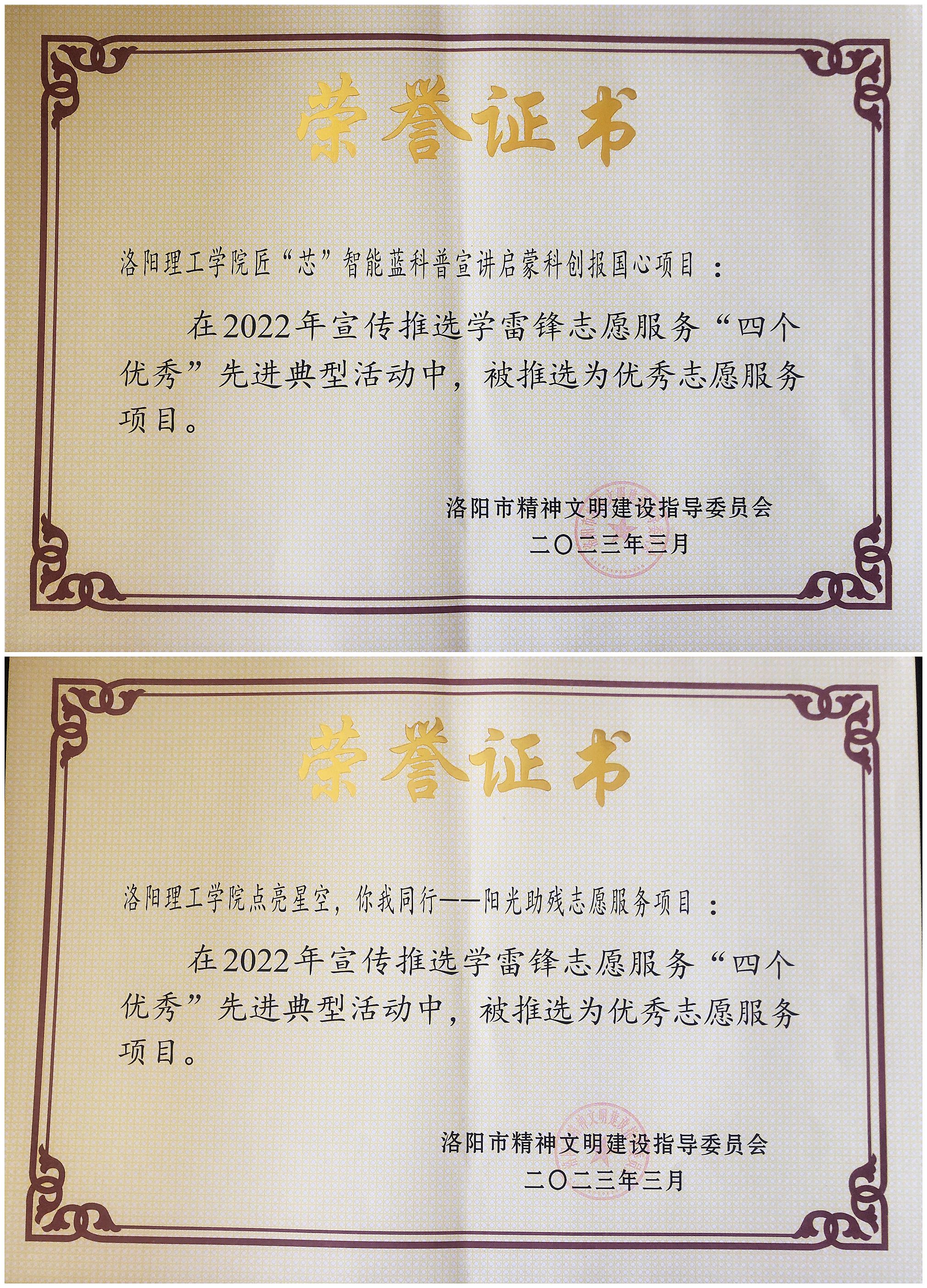 “点亮星空,你我同行—阳光助残”志愿服务项目、“匠芯智能蓝:科普宣讲启蒙科创报国心”志愿服务项目榜上有名,环境工程与化学美高梅娱乐场