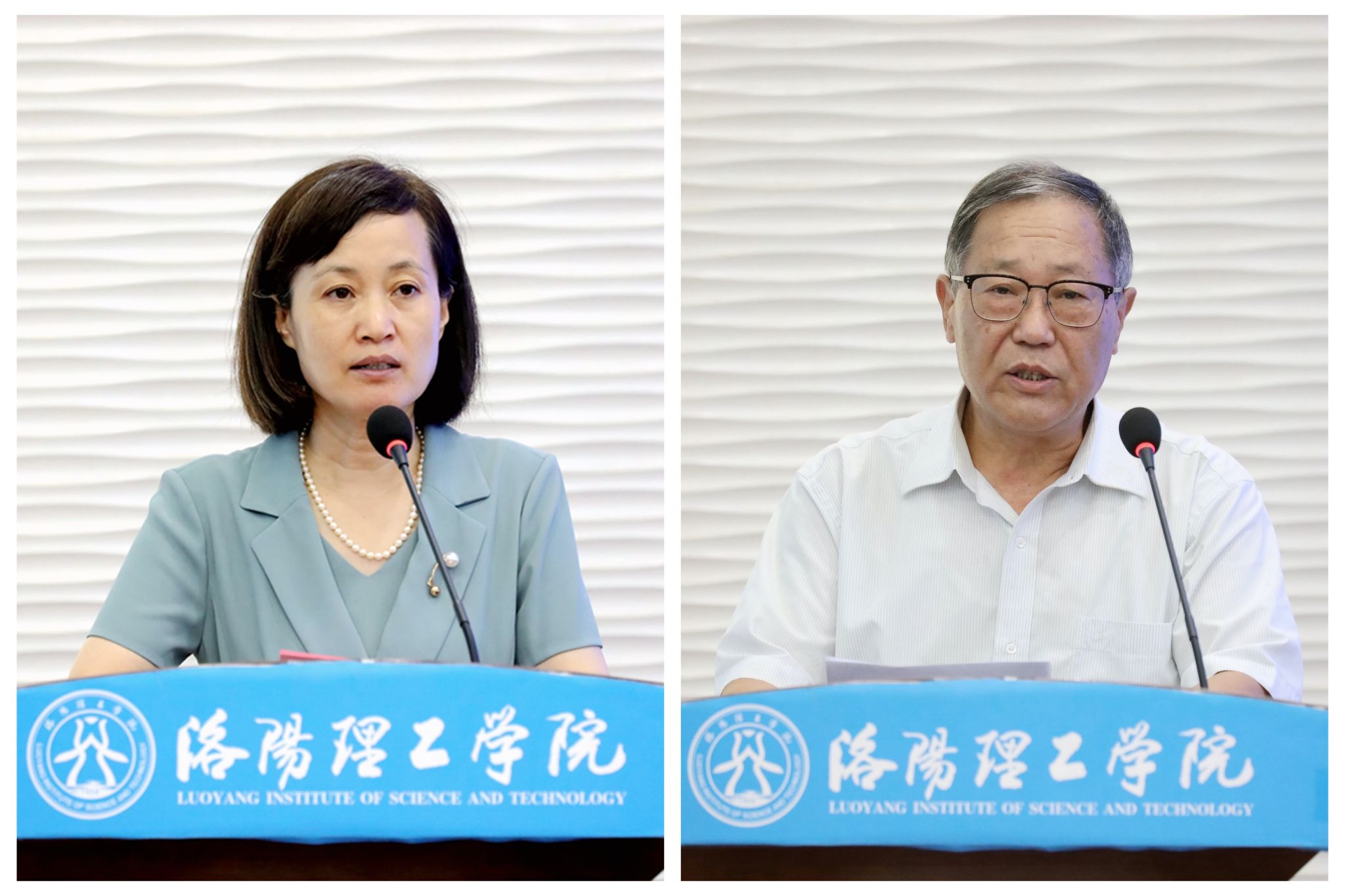 副校长丁梧秀(左)、河南科技大学原副校长宋书中(右)出席开幕式并致辞