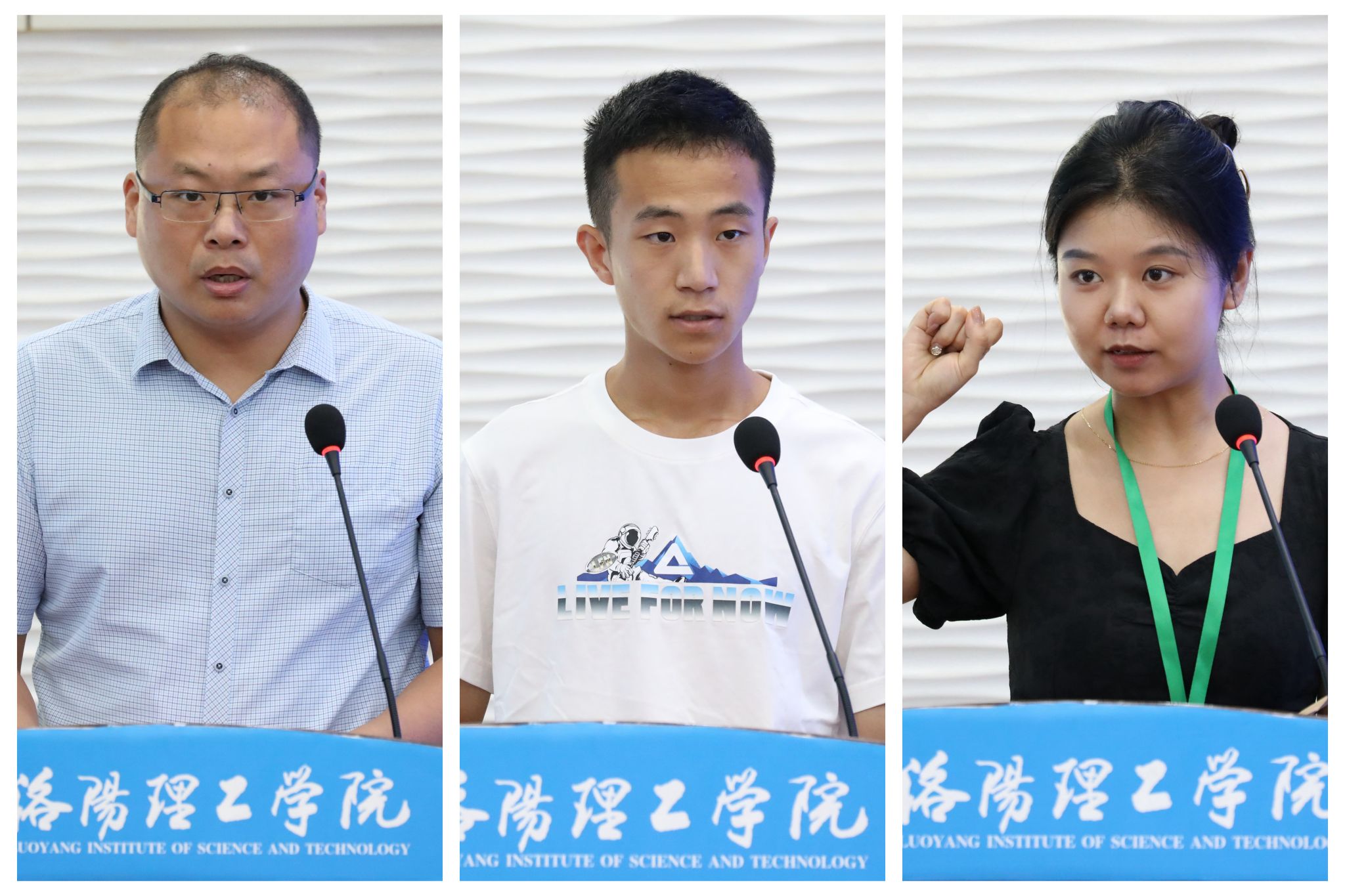 裁判员代表(左)、参赛队员代表(中)、志愿者代表(右)分别在开幕式上宣誓
