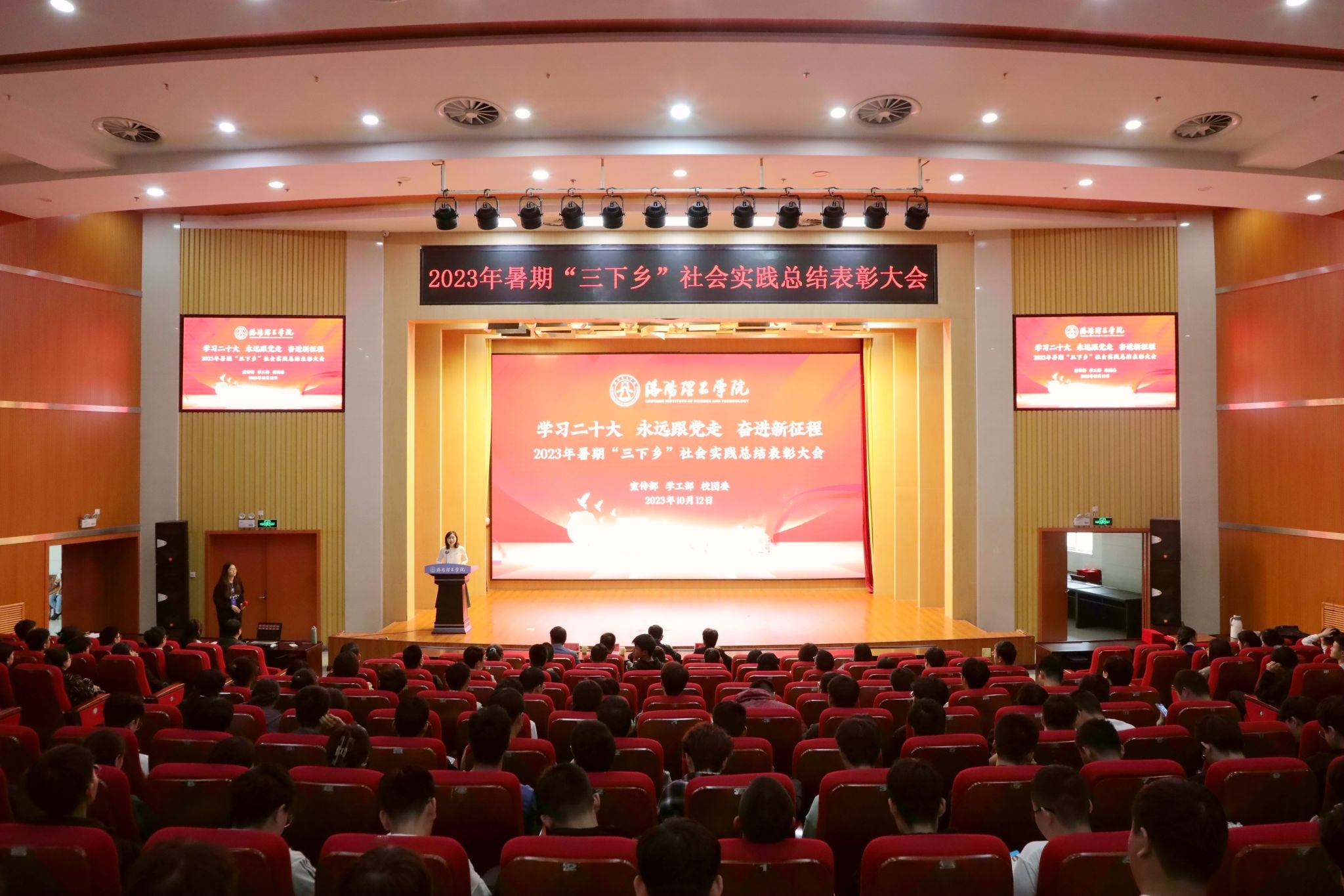 2023年暑期“三下乡”社会实践活动表彰总结大会在王城校区图书信息中心报告厅举行。校党委副书记胡恩立出席大会,宣传部、学生处、马克思主义美高梅娱乐场