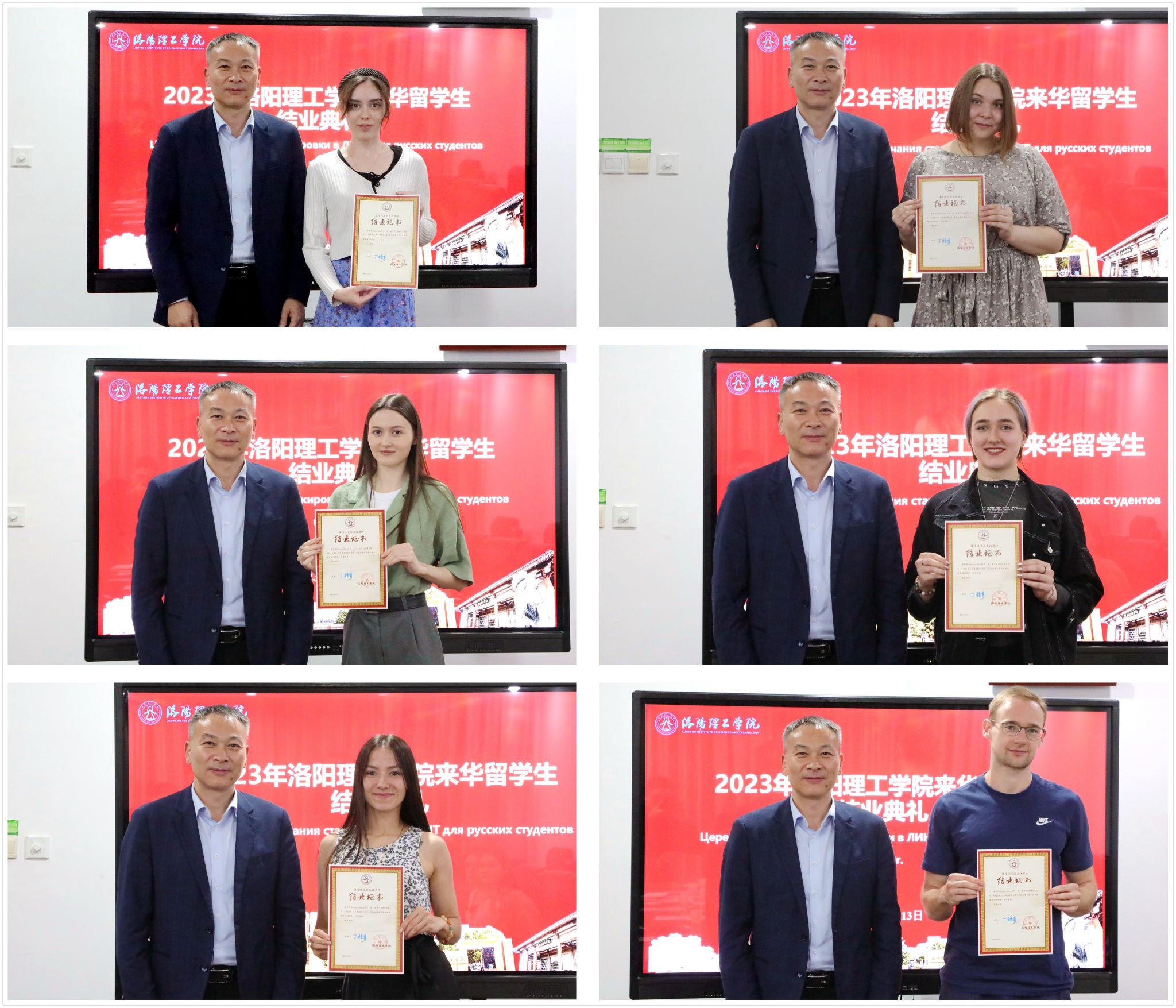 校党委副书记、工会主席曾涛向来自俄罗斯科斯特罗马国立大学的留学生颁发结业证书
