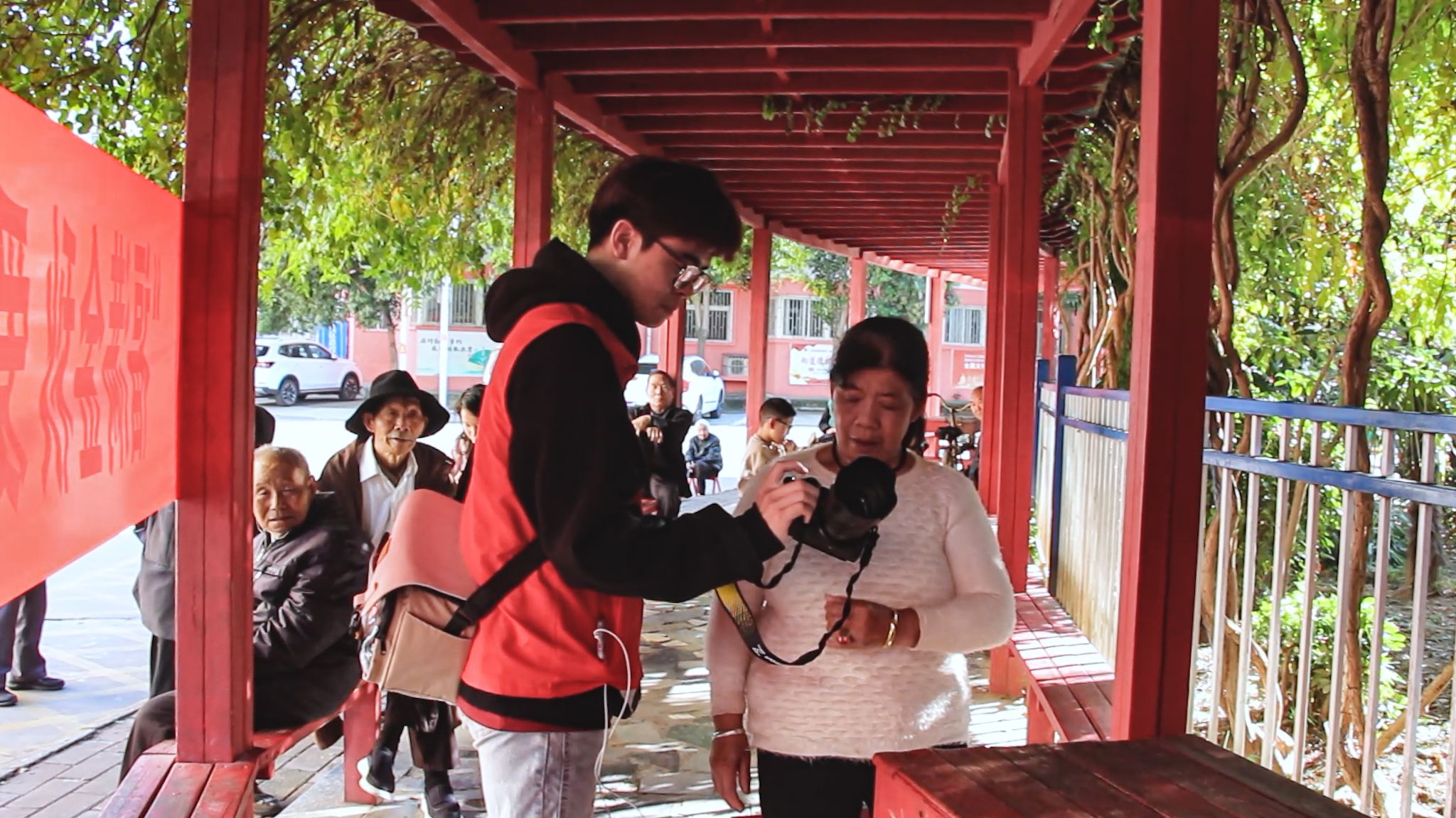 “大爷,大妈,您看这张照片您满意吗?”每张拍照结束后,志愿者们耐心地等待各位老人精心挑选着想要留下的照片,“中,照的可美”,志愿者们的摄像得到了老人们的一致好评。