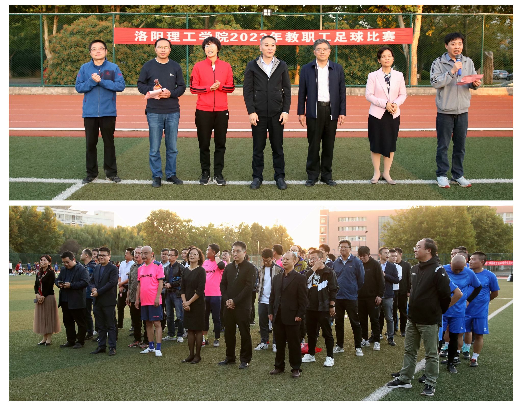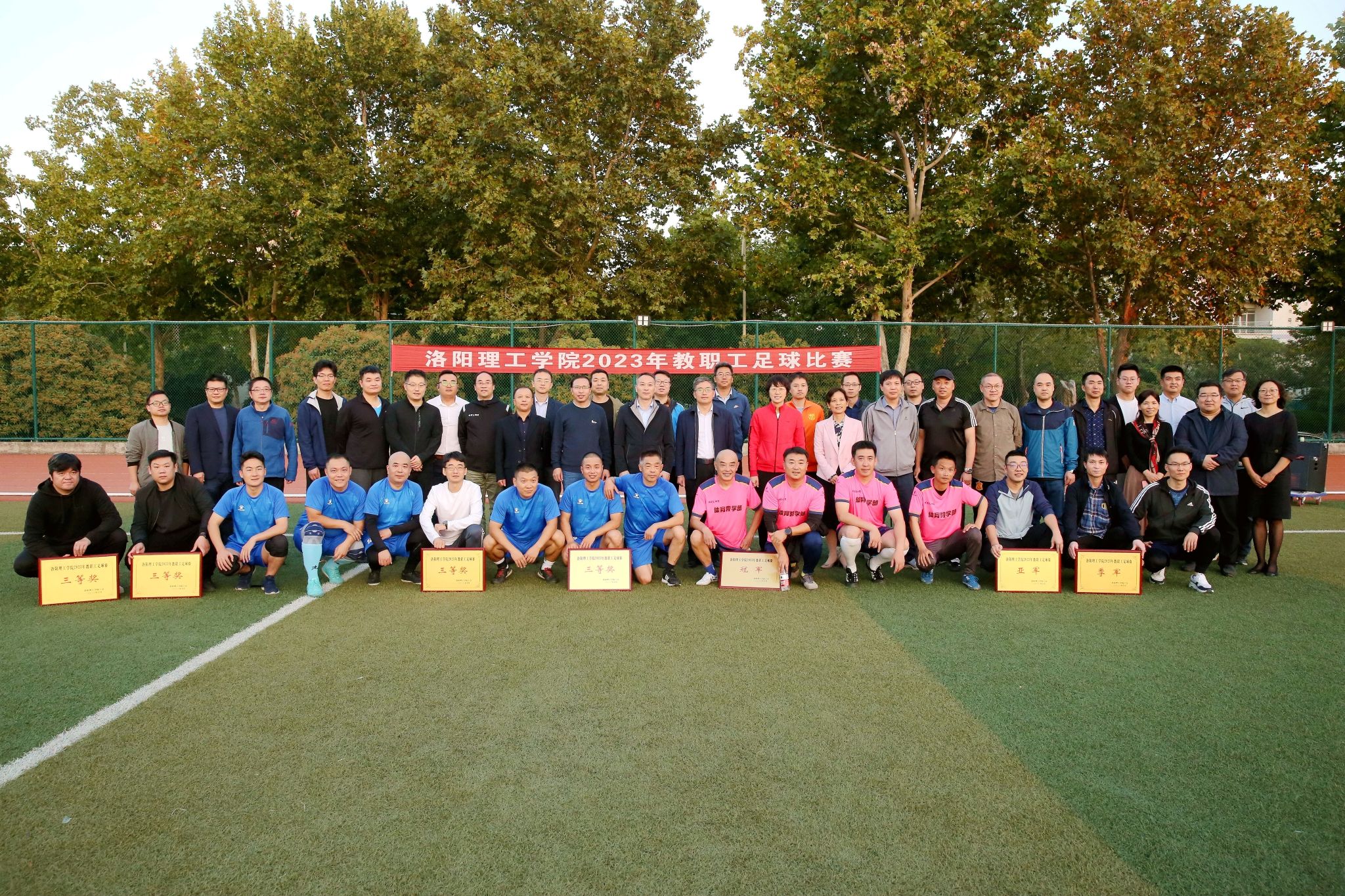 举办2023年教职工足球比赛,图为本届比赛闭幕式现场。