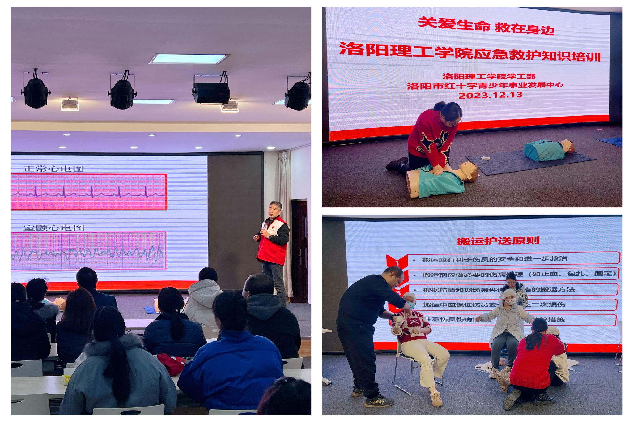 联合洛阳市红十字会在王城校区心理情景剧场举办“生命教育进校园 立德树人谱新篇”红十字救护员培训项目。洛阳市红十字会红十字青少年事业发展中心主任赵海峡为培训班学员授课,来自学生工作处、后勤管理处、团委、大学生心理健康教育中心、校医院、各二级美高梅娱乐场