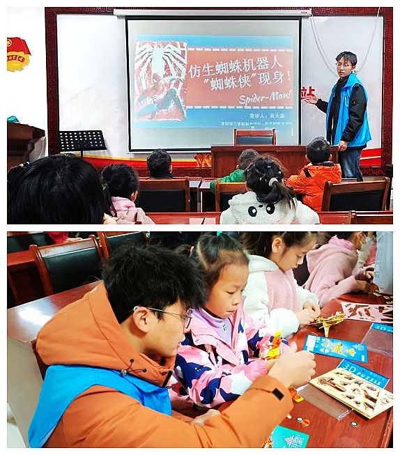 教工第三党支部带领匠“芯”智能蓝科普宣讲团分别于11月25日、26日在纱厂西路社区、定鼎门社区开展航空模型、仿生蜘蛛机器人为主题的科普宣讲活动,.本次神奇航模和仿生蜘蛛机器人的宣讲小课堂都圆满完成,科普宣讲让晦涩难懂的科学知识走进生活课堂,两位宣讲人用心的准备让课堂更生动。在宣讲和实践中,科学的种子深埋在小朋友的心中,总有一天会结出累累硕果。