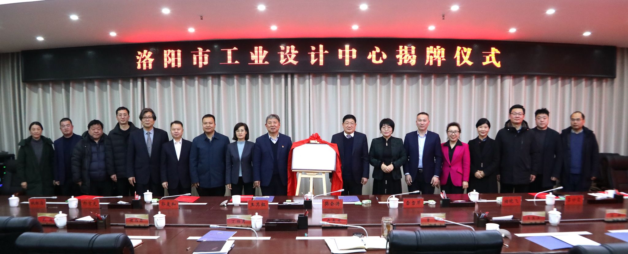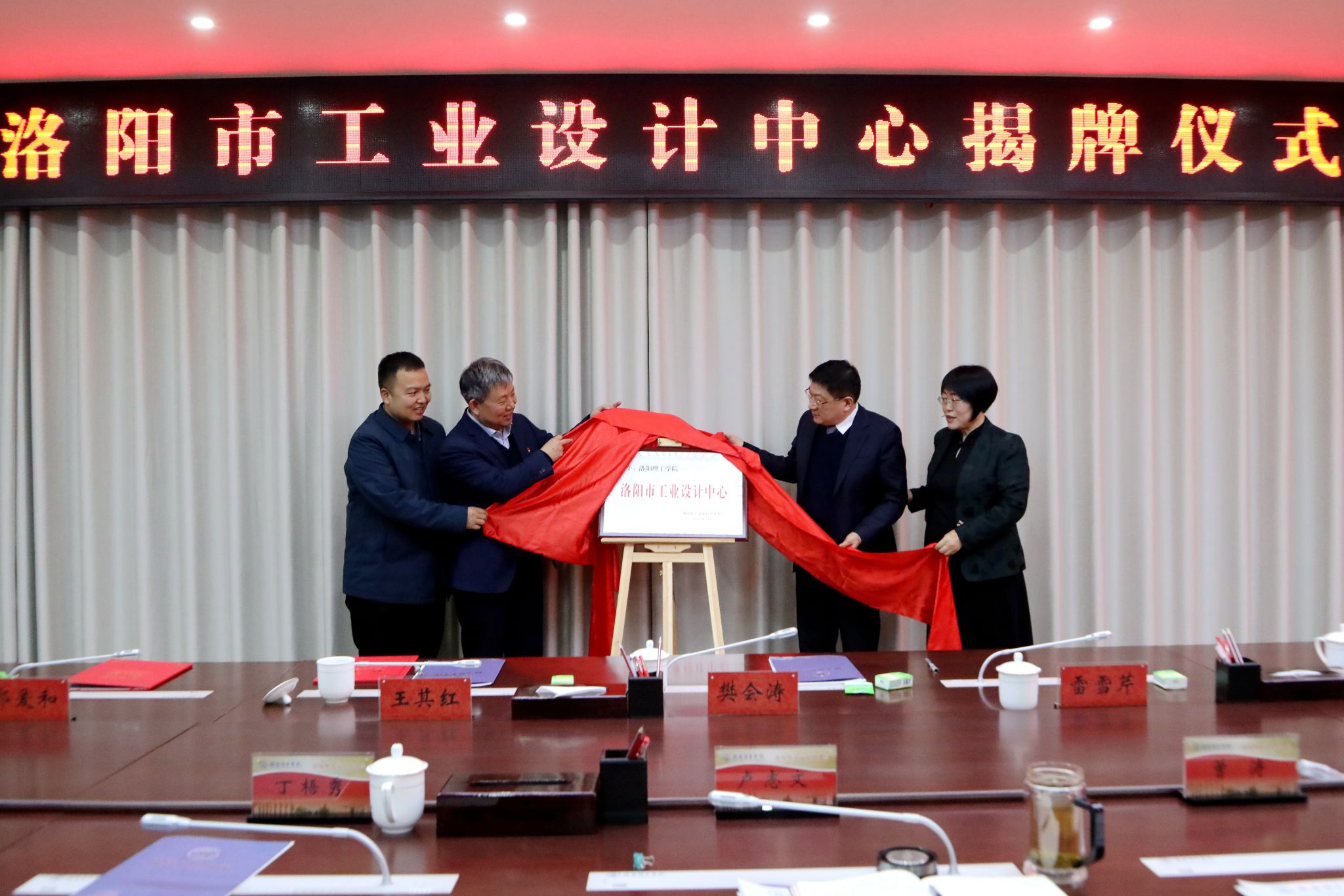 樊会涛、卢志文、雷雪芹、张民楷共同为洛阳市工业设计中心揭牌。