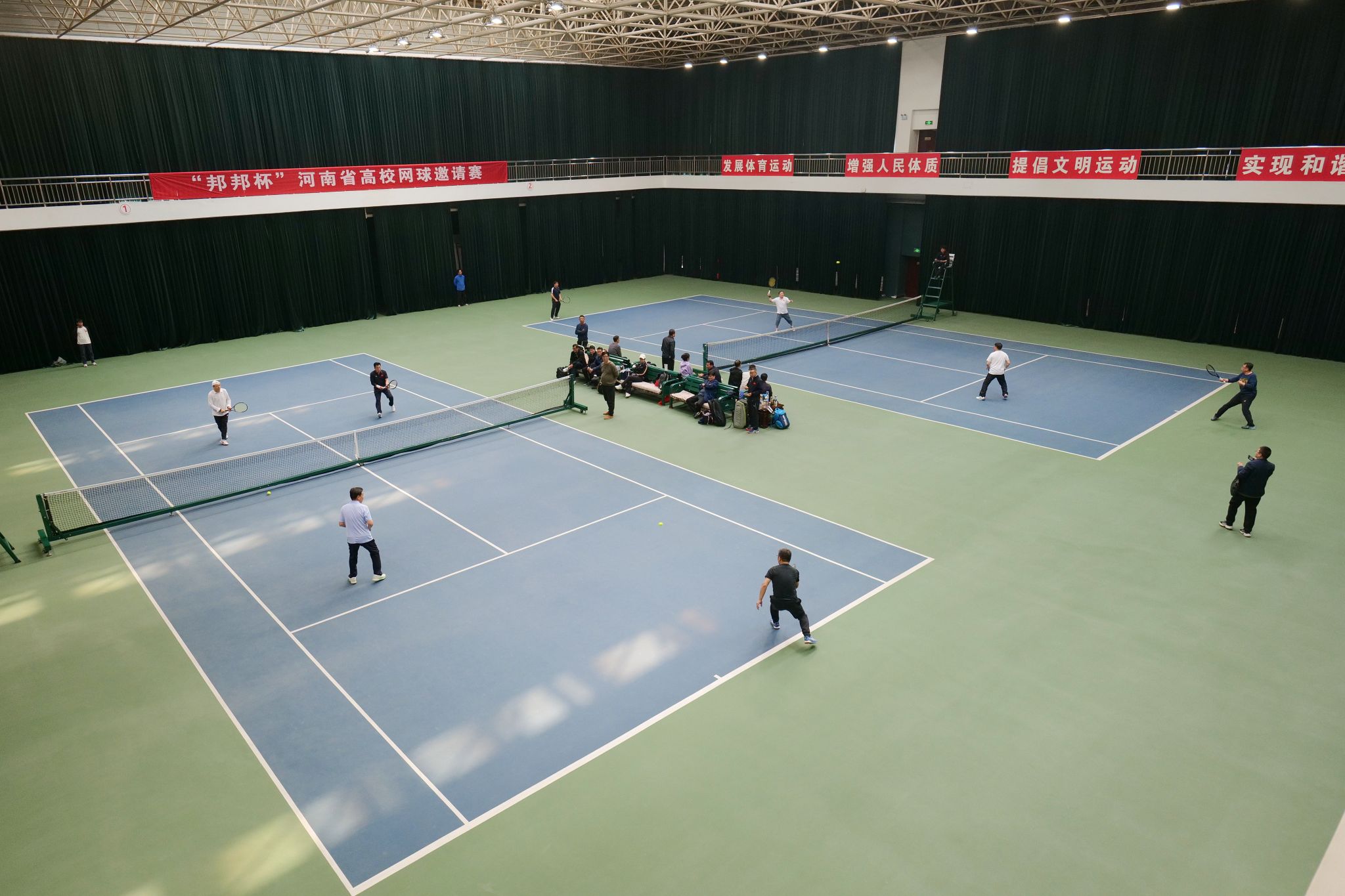 3月16日,河南省高校网球邀请赛在美高梅娱乐场 王城校区体育馆举行。本次比赛旨在引导高校师生积极参与阳光体育,体验网球运动魅力,促进各高校之间交流与合作,共同营造健康向上的生活方式。共有来自河南省部分高校和教育界的20余名选手参加比赛。