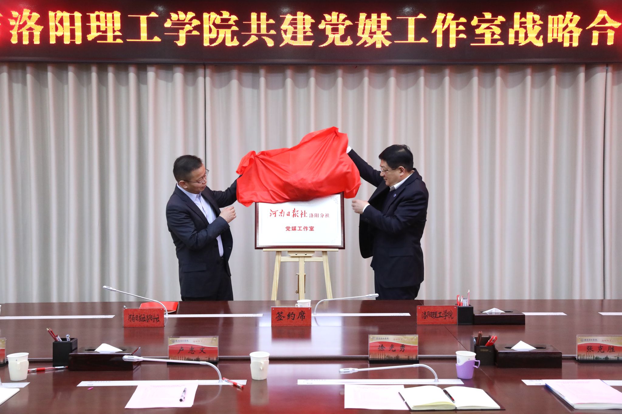 陈学桦与卢志文共同为党媒工作室揭牌
