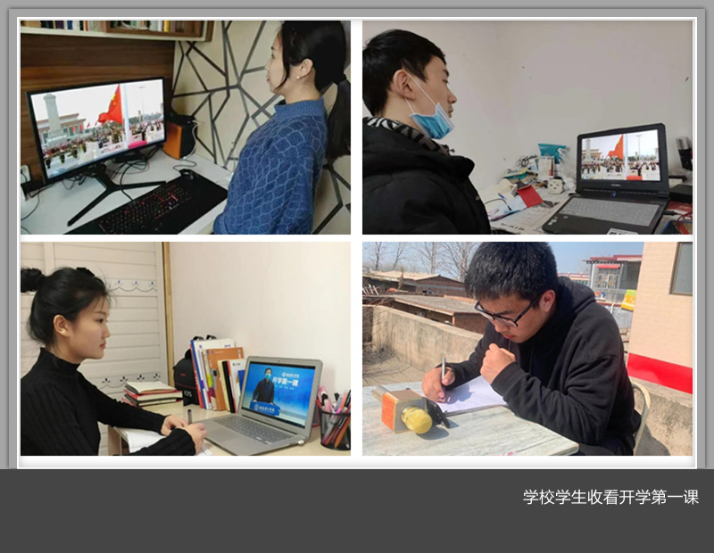 下午14:30,全体师生在电脑、手机、智能电视等收看终端前共同唱响《中华人民共和国国歌》,拉开了2020春季学期开学第一课的序章。全体师生重温了省教育厅党组书记、省教育厅厅长郑邦山在2月14日河南省疫情防控工作第九场新闻发布会上对全省师生的新学期寄语。进一步明确了在这场全民抗疫战争中自己的职责和使命,坚定了信心和努力方向。